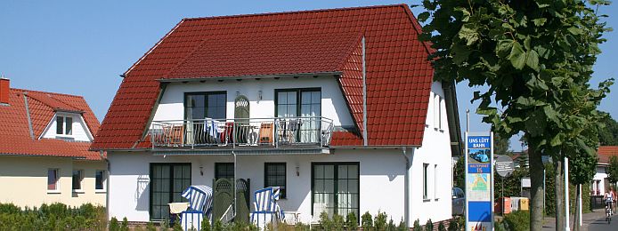 Wohn-/Schlafraum mit Couchgarnitur (Ausziehcouch 2 Pers.), Sat-TV, Esstisch, moderner Einbauküche (Backofen, Spülmaschine, Mikrowelle). Doppelzimmer. Bad mit Fenster, WC, Dusche und Föhn. Terrasse mit Strandkorb, Sitzmöbeln.